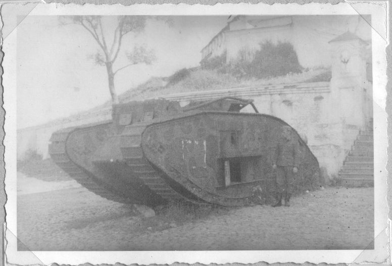 engl. Panzer (1. Weltkrieg) vor Kathedrale
